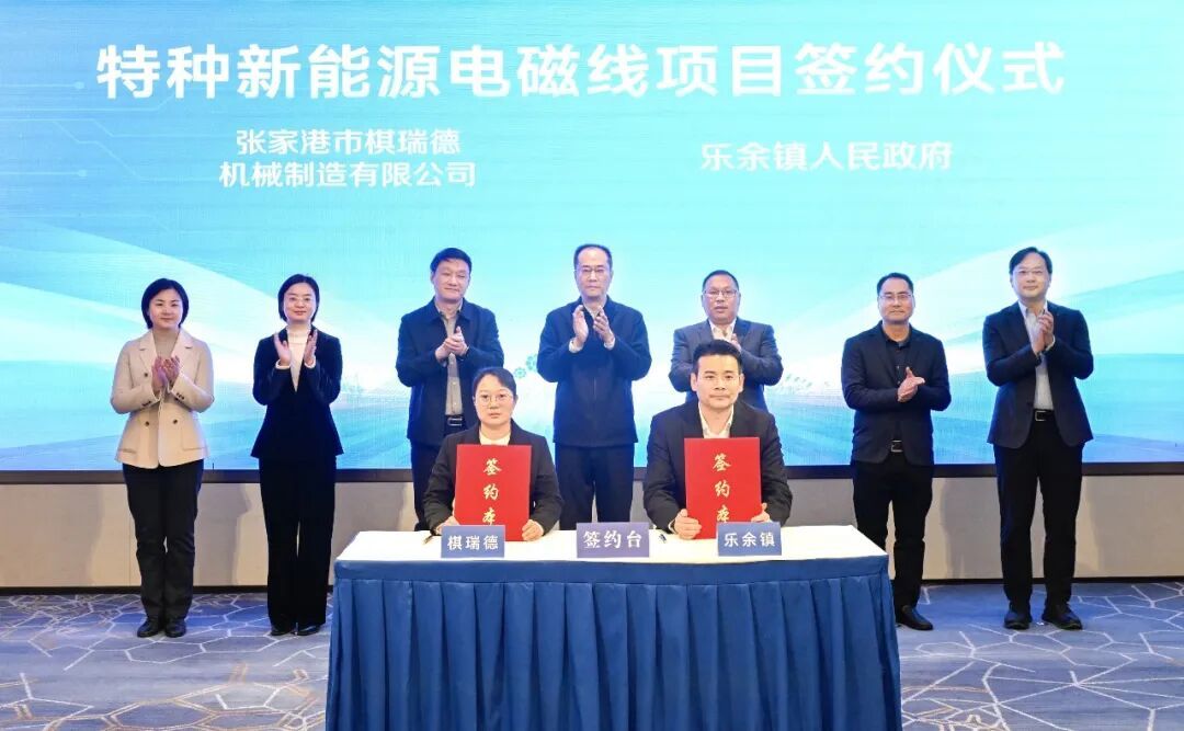 近年来,张家港大力发展新能源汽车及零部件产业,持续强链补链延链,集聚了一批优质龙头企业和配套项目,产值总规模突破500亿元。棋瑞德是张家港本土民营企业,深耕新能源装备领域多年。此次,棋瑞德抢抓新能源汽车产业发展机遇,在乐余镇增资5亿元,打造特种新能源电磁线研发制造基地。项目建成达产后,可形成年产特种电磁线2000吨的生产能力,预计年产值4.5亿元。