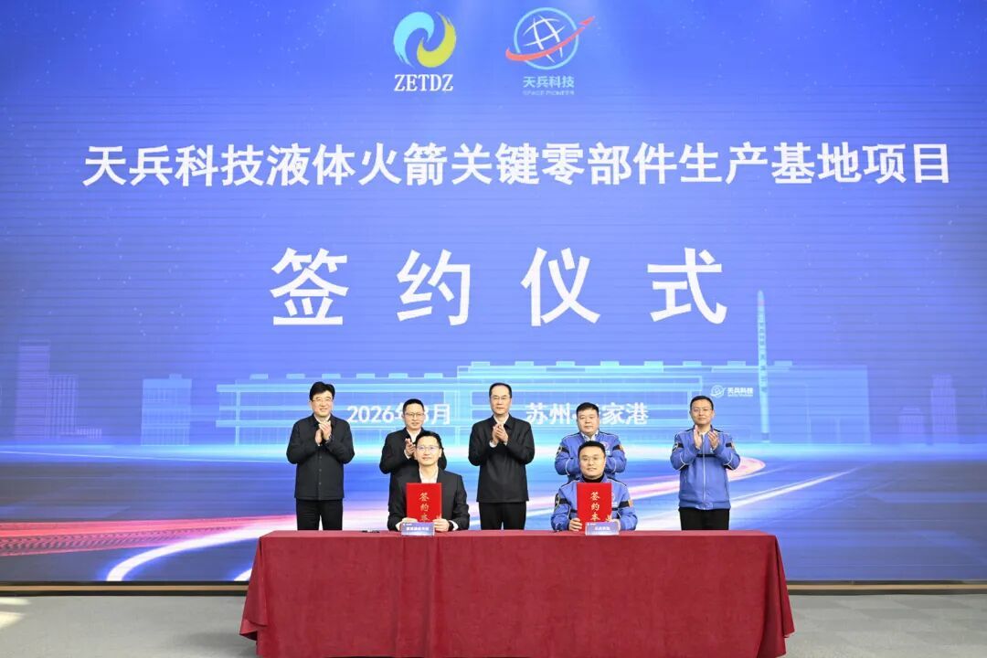 天兵科技是我国商业航天领域首家开展液氧煤油火箭发动机及中大型液体运载火箭研制的国家高新技术企业,也是全球第一家首飞即成功的商业火箭公司,获“苏州市姑苏重大创新团队”等荣誉称号。2024年,天兵科技液体火箭张家港智能制造基地建成投用。此次签约的天兵科技液体火箭关键零部件生产基地项目总投资10亿元,通过张家港火箭总装和酒泉卫星测发的南北高效协同,天兵科技未来可将单箭发射效率提升100%,组网成本降低30%以上,保障每年60次以上的高频发射能力,全线推进我国低轨卫星星座的建设。