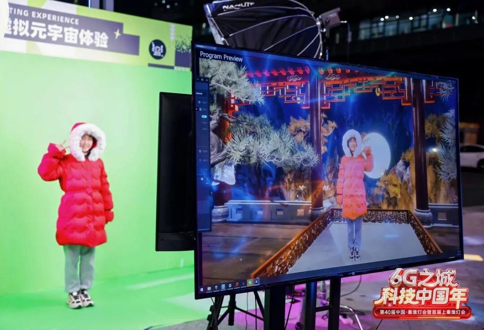 一方绿幕,一台设备,走上前就能置身流光溢彩、美轮美奂的灯会现场,在定制故事里留下独一无二的影像记忆。在位于南京江宁的上秦淮灯会现场,广大游客沉浸式体验了一键入“画”。