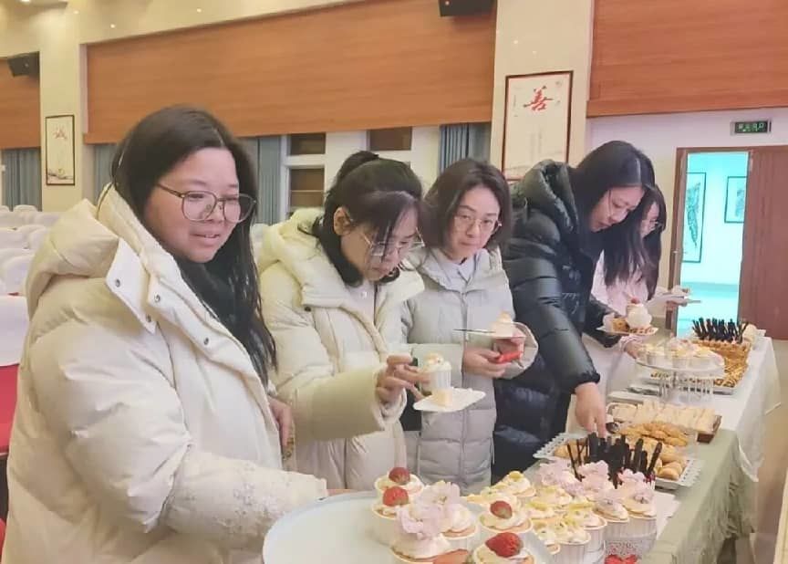 美好在指尖流转,暖意在心底升腾。为了让女教职工们在节日里感受到家的温暖与甜蜜,工会还特意为大家准备了精美的节日蛋糕和丰富多样的茶歇甜点。活动间隙,大家围坐相依,共品香甜软糯的蛋糕与精致可口的点心。这份小小的甜蜜,不仅舒缓了平日工作的疲惫,更拉近了彼此间的距离,增进了同事间的情谊。