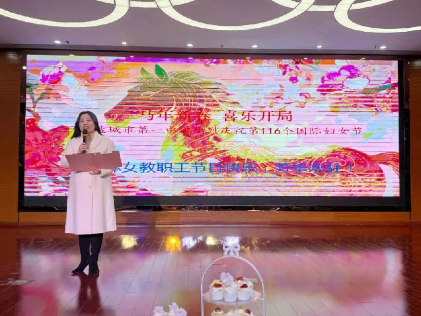 蓓蕾绽开迎暖日,巾帼歌舞醉东风。值此美好初春,第116个“三八”国际妇女节如约而至。为大力弘扬“自尊、自信、自立、自强”的新时代女性精神,丰富校园文化生活,营造尊重女性、关爱女性的浓厚氛围,3月6日下午,盐城市第一中学工会在润海路、蓝海路、西环路三个校区分别举办了以“马年新春 喜乐开局”为主题的庆祝活动。活动以清歌为礼,以温情为伴,女同志们怀揣满心欢喜,谈心得,品甜品,赏节目,庆祝这个专属于她们的美好节日。