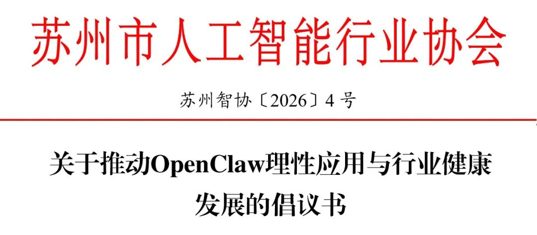 今天(11日),苏州市人工智能行业协会联合相关企事业单位,向全市OpenClaw开发者、应用企业、创业者和相关机构发出如下倡议: