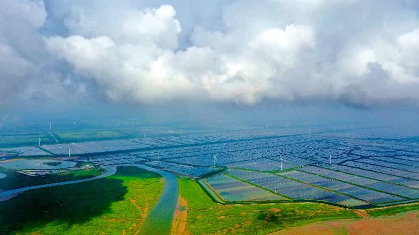 这里还是全国产能最大的晶硅光伏产业集群基地、全球单体规模最大的滩涂风光电产业基地,逐渐形成“风光氢储”一体化的新型能源体系。