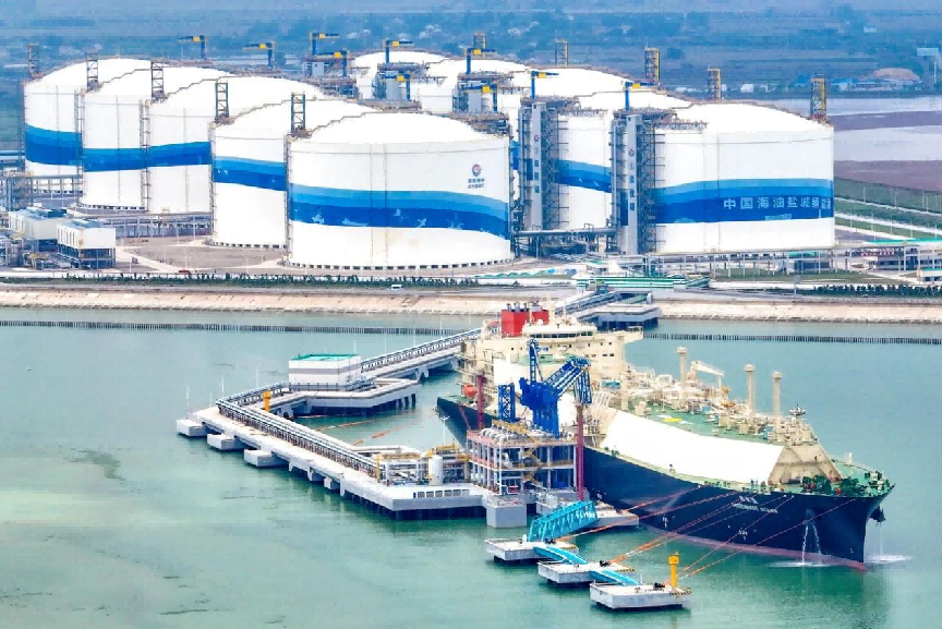 在滨海港,全国首座LNG冷能交换中心已投入运营。LNG在气化过程中释放的-162℃冷能,过去往往被白白浪费。如今,这些冷能被转化为不同梯度的冷源,输送到下游产业,大西洋鲑养殖、冻干食品、冷链仓储、智算中心等项目正加速落地。即将投产的青禾冻干果蔬项目,采用LNG冷能替代传统电能进行加工,制冷成本可降低三分之一,将成为全球首家利用LNG冷能开展冻干食品加工的企业。