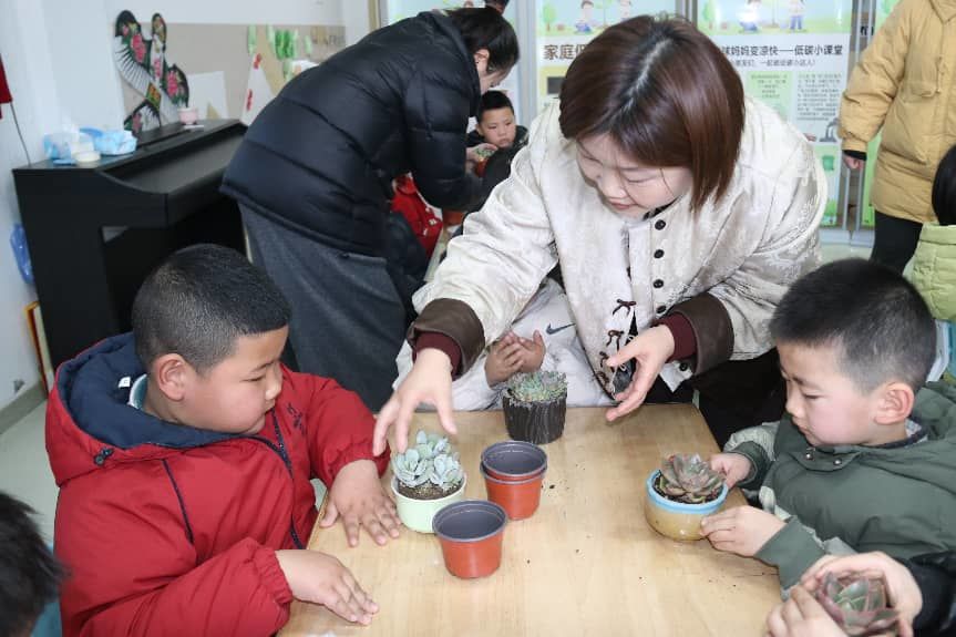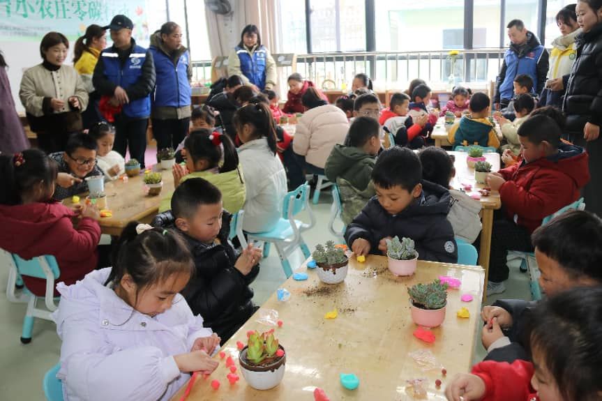 活动现场暖意融融、童趣盎然,工作人员提前布置好活动场地,准备好多肉幼苗、小花盆、装饰材料以及零碳科普展板,为孩子们打造了一场兼具知识性与趣味性的绿色体验之旅。活动开始,工作人员以生动易懂的语言,向孩子们普及零碳小知识,结合生活中的常见场景,讲解垃圾分类、节水节电、爱护植物等环保小技巧,让“零碳生活”的理念走进孩子们的心中。