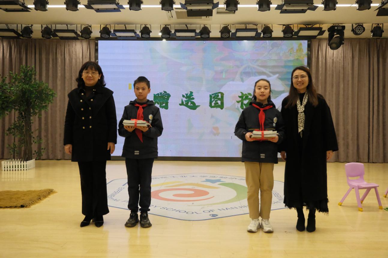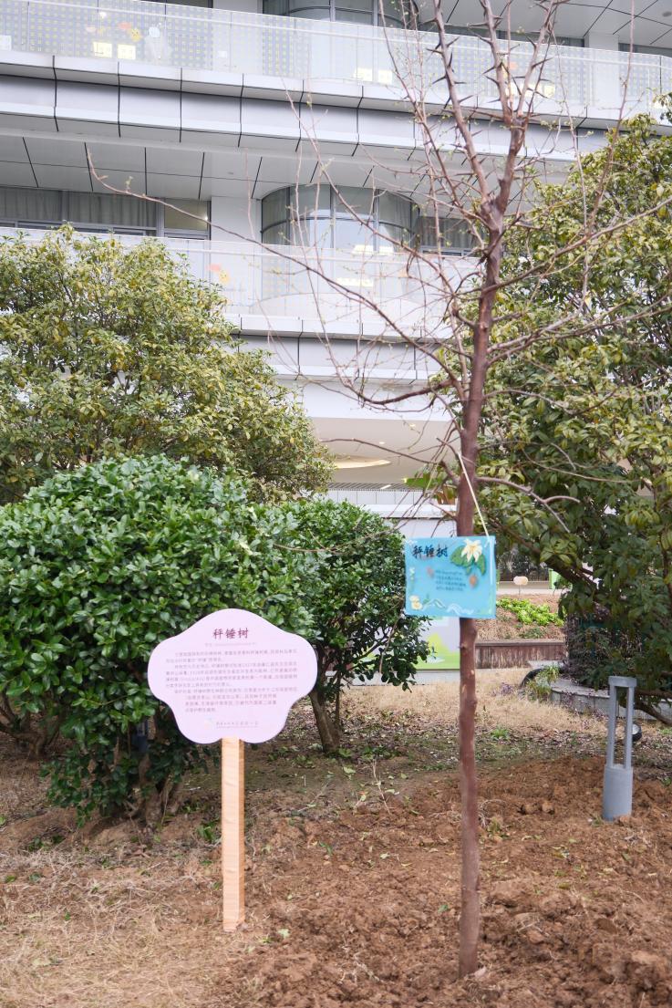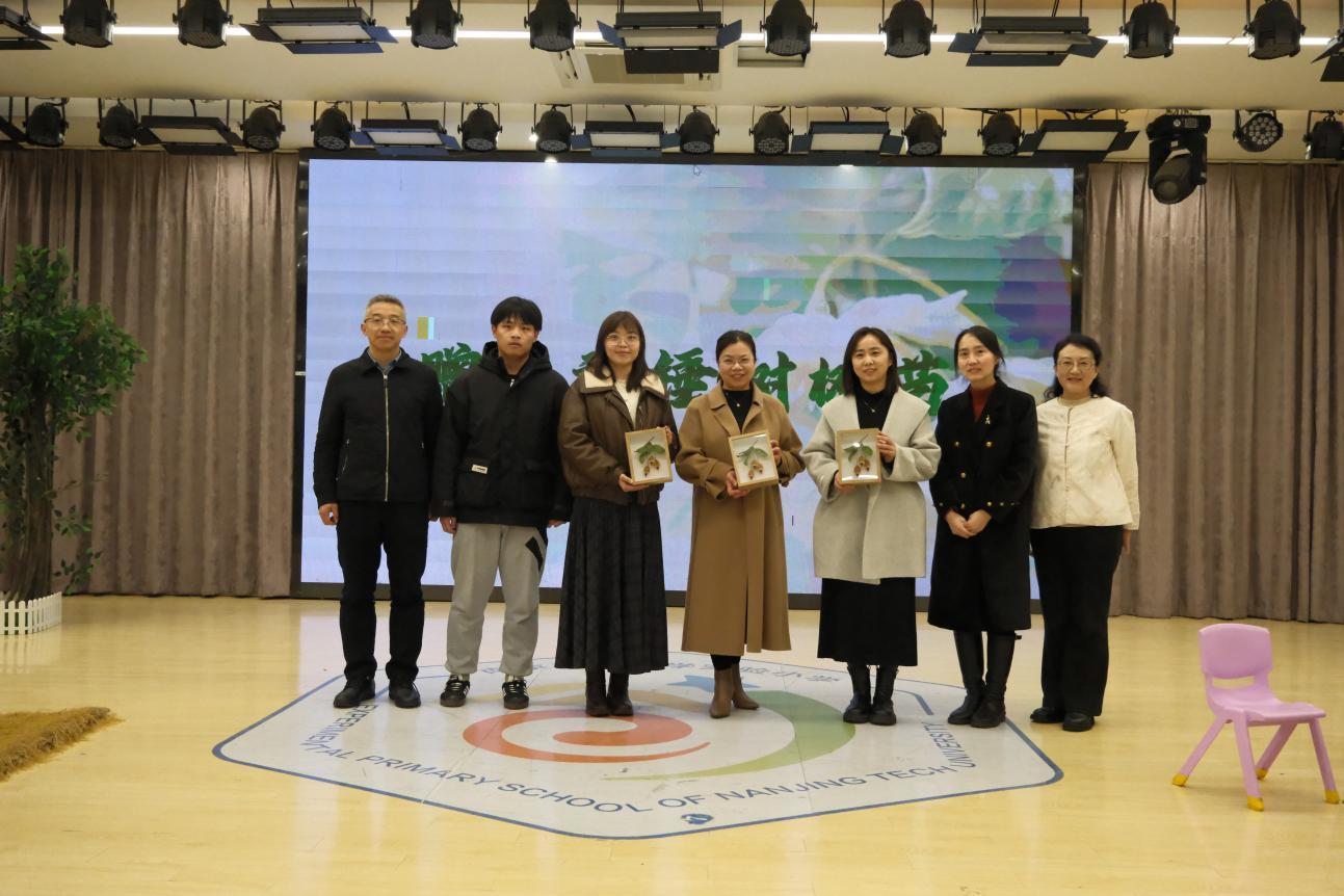 当天,最令人期待的环节莫过于秤锤树树苗亮相校园。这一南京乡土珍稀树种,因果实形似秤锤得名,更是由中国植物学家独立发表的第一个新属新种植物,兼具生态价值与科研意义。由南京市教育局、南京市生态环境保护宣传教育中心、南京江北新区管理委员会生态环境和水务局、南京江北新区管理委员会教育局、南京江北新区国家农创中心与会嘉宾分别为学校赠树、赠书,师生们共同为树苗挂牌,稚嫩的小手与坚实的大手一起,定格下守护珍稀物种的绿色约定。学生代表用坚定的声音发出倡议:“爱护每一棵树,守护校园里的每一个生命,做生态家园的小小守护者。”