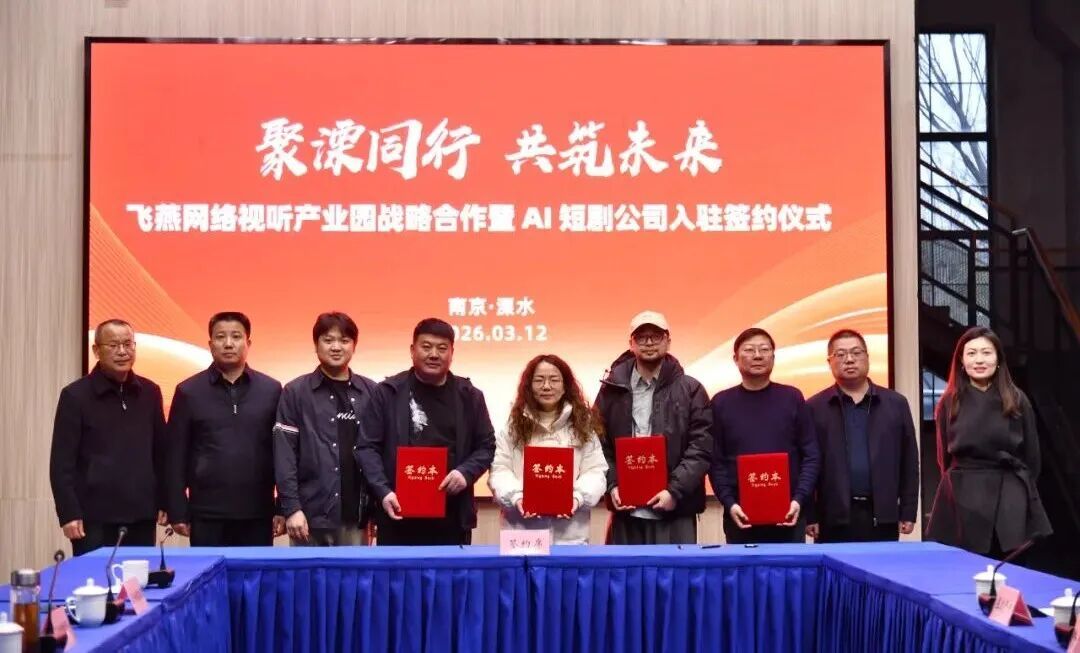 签约仪式上,南京燕栖文化产业发展有限公司与南京燕来影视科技有限公司签署战略合作协议,双方将携手推动飞燕网络视听产业园高质量运营,吸引优质短剧项目落地溧水。同时,两家短剧优质企业AI短剧公司正式入驻园区,将聚焦AI技术与真人短剧结合,业务覆盖从剧本创作到制作发行的全链条,为溧水短剧产业注入科技动能。