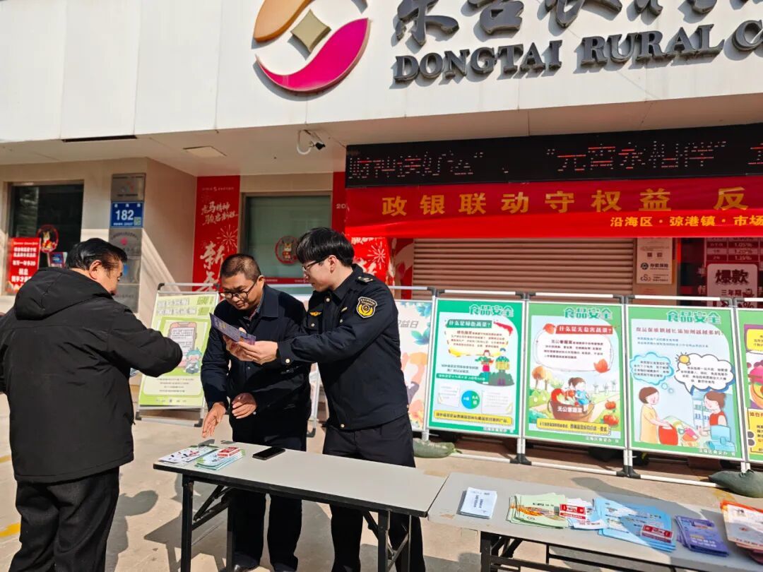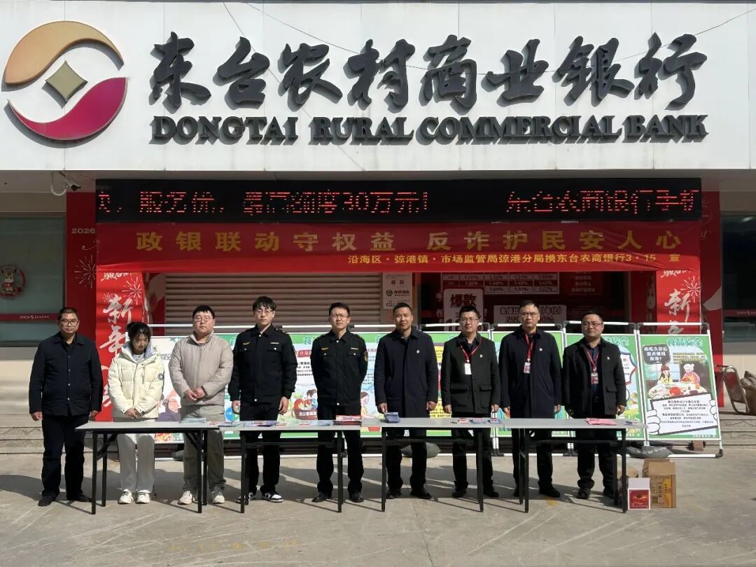 3月14日,东台沿海经济区联合弶港镇、市场监管局弶港分局、弶港海防派出所,携手东台农商银行弶港地区四家网点,在弶港支行门前开展“3・15”主题宣传活动,以实际行动守护群众切身利益。