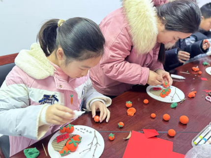 亲子家庭默契配合、大胆创意,不一会儿,一串串形态饱满、寓意新春吉祥的“柿子”作品便陆续完成。孩子们捧着自己的创作成果,脸上洋溢着满满的成就感与喜悦。