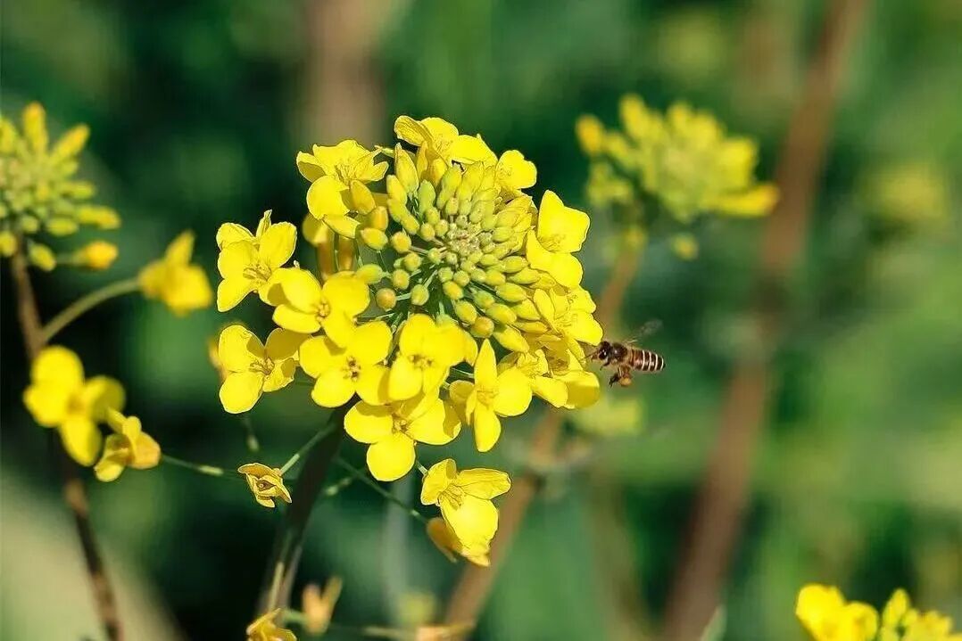 油菜花嫩黄的花瓣泛着柔光