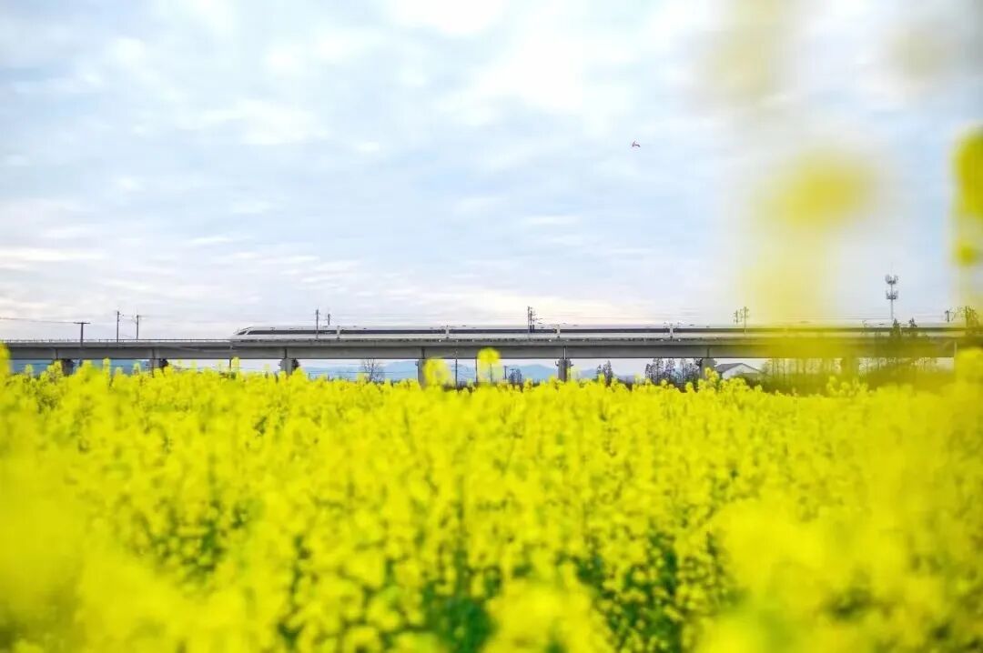 有高铁自花海穿行而过