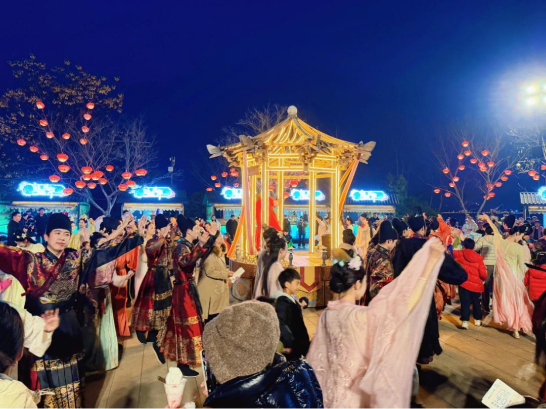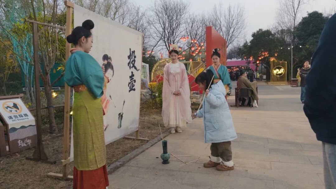 今年的演出在互动环节上也进行了优化升级。观众在演出前可参与蹴鞠、投壶、射箭、对弈、对词等传统互动体验,还有沉浸式快闪剧情惊喜亮相,从“旁观者”转变为“剧情参与者”,真正实现“不止看戏,更是入戏”。