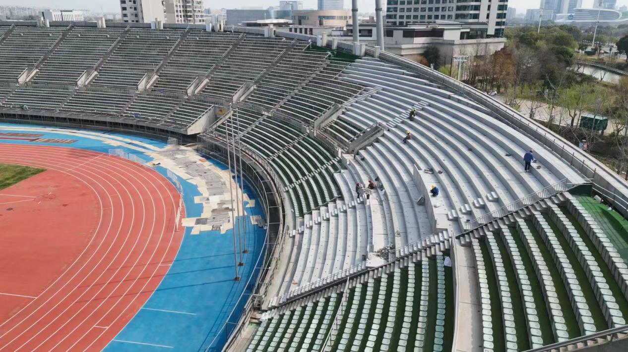 为满足球迷观赛需求,扬州体育公园加紧升级改造,工人们分散在各个区域紧张作业,新增2000个观赛席位、升级主客队球员休息室、优化园区导视系统,从看台容量到通行体验,从球员保障到草坪养护,每一个细节都力求做到极致。