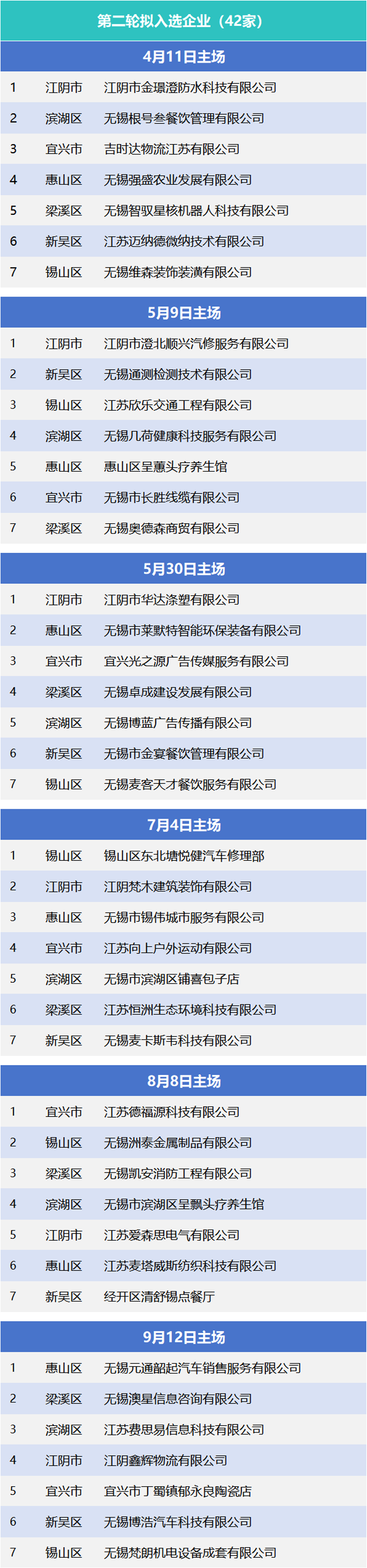 本次遴选分两轮进行报名。第一轮自2月5日启动,2月28日截止,吸引了全市98家企业报名,入选企业将跟随无锡队一路到底,最多可在8个主场以四拼广告形式展示企业形象。第二轮自3月5日启动,3月15日截止,吸引了全市638家企业报名,入选企业将以广告横幅的形式,在无锡队常规赛主场亮相一次。此外,入选的小微企业还将拥有2026赛季使用无锡赛区赛事标识、“无锡赛区赛事供应商”称号的权益。