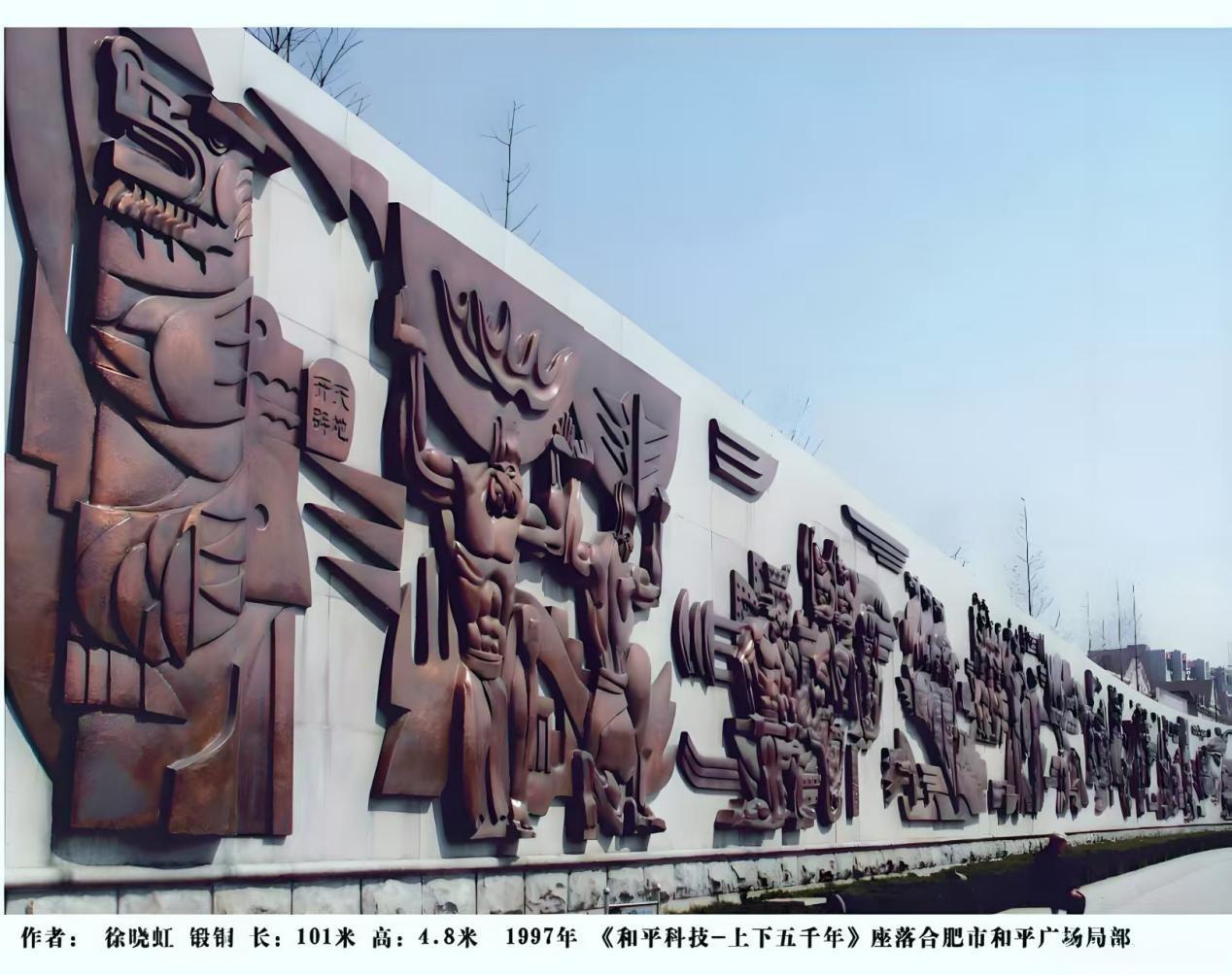 他为合肥和平广场创作的101米锻铜浮雕,更是一件震撼人心的艺术巨作,全景式地刻画了从远古神话到现代科技的安徽历史长卷。在这长长的浮雕上,我们可以看到远古时期的神话传说,感受到祖先们对自然的敬畏和对美好生活的向往;可以看到历史上安徽的名人志士,他们为国家和社会的发展做出了重要贡献;还可以看到现代科技的飞速发展,安徽在新时代的蓬勃生机。这件浮雕,就像一部矗立在公共空间的历史教科书,让每一个来到这里的人都能从中了解安徽的历史和文化,感受到时代的变迁和发展。