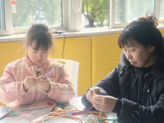 最热闹的当属手工制作环节,亲子家庭携手合作,用扭扭棒制作春日花束。孩子们认真地扭、折、绕,一点点勾勒出花瓣的模样,家长们则在一旁轻声指导、默契配合,现场氛围温馨又专注。“我要做两朵小花,一朵给妈妈,一朵给奶奶!”“我要和弟弟一起把花带回家送给妈妈!”孩子们兴奋地分享着自己的计划,手中的动作却一刻不停。不一会儿,一朵朵色彩鲜艳的小花在指尖悄然“绽放”,一束束精心扎制的花束,既装下了烂漫的春日,也盛满了孩子们纯粹的爱意。