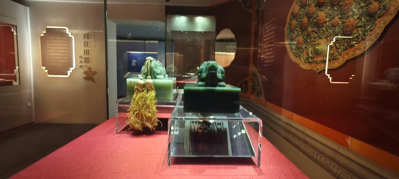随后分三个单元,讲述“苏州织造”的机构历史、职能与工艺生产。第一章“姑苏城内织造官”,展示“苏州织造”的职官制度,江南三织造的分工与织造官群像,展出五品文官服制及三织造代表产品实物,以及最知名的苏州织造官之一李煦的历史肖像。第二章“选派江南诸能手”, 阐释织造官承担的选派工匠及伶人入宫的职能,清代唯一被允许在作品上刻名的苏州籍工匠朱彩、苏州籍玉匠徐鸣、苏州籍玉匠金震寰等一批清代苏州籍宫廷南匠作品集中展出。第三章“宫廷用器出苏州”,则全方位展示苏州织造承担的清廷各项大小活计,从乾隆登基后的第一份脱胎漆盘订单,到文房四宝、佛器玺册、起居陈设、包装艺术,甚至宫廷专属的春屏彩胜,装裱乾隆御笔的丝绸包首,苏州织造包揽了皇家吃穿用度、礼佛赏玩的方方面面,苏作工艺也因此占据宫廷工艺品的半壁江山。“精、细、雅、巧”的苏式美学深深影响了紫禁城内的皇家美学。