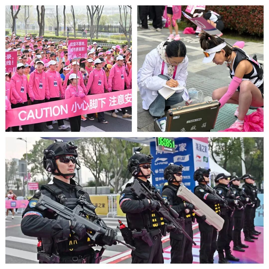 “金标赛事”配备“金牌服务”。当天,共有7000余名安保人员和1275名医护急救人员全程为选手保驾护航。赛道沿线设置了28个固定医疗点,配置了1台医疗指挥车、23台救护车、1架救援直升机、115台AED设备。此外,6000多名接受过专业培训的志愿者热情陪伴,提供物资分发、线路引导等微笑服务。值得一提的是,今年“锡马”的科技感升级,在选手号码布上新增成绩查询二维码,参赛服发放机增加了芯片检测功能,为广大跑友们带来了更智能便捷的参赛体验。