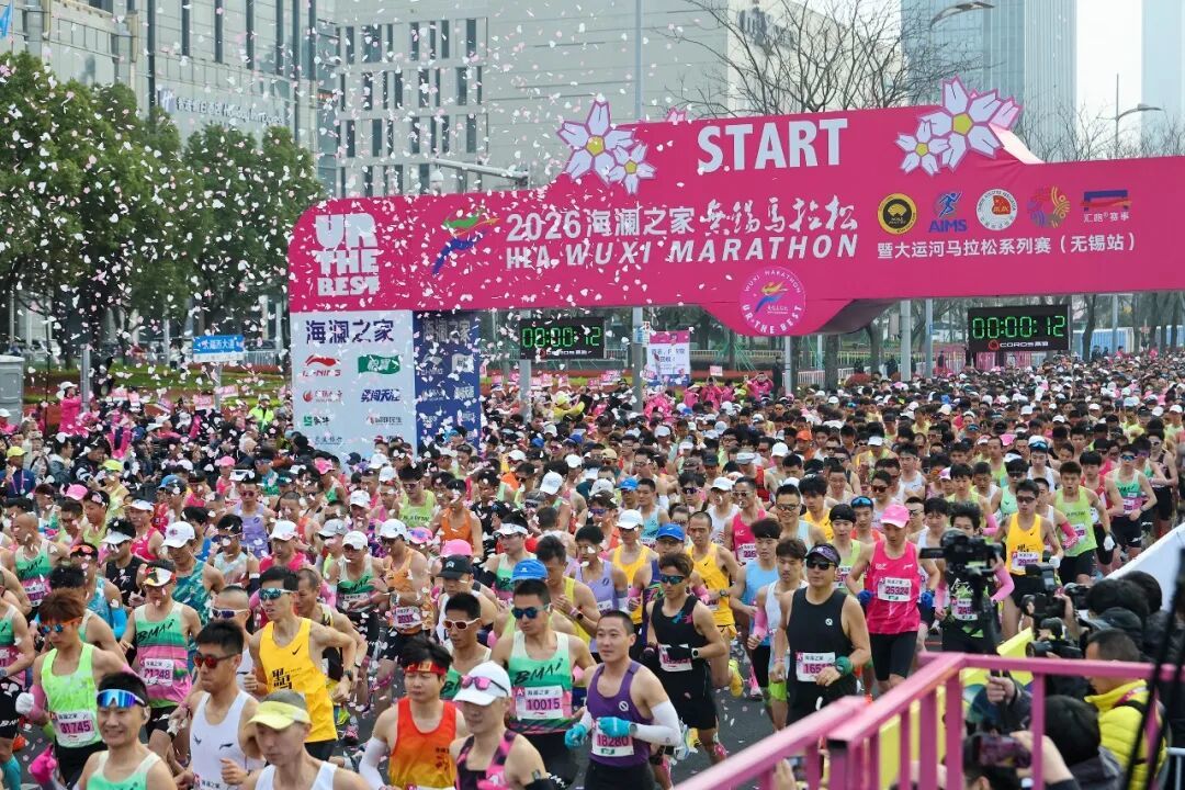 3月22日7时,随着樱花雨烂漫飞扬,2026海澜之家无锡马拉松暨大运河马拉松系列赛(无锡站)热力开赛。国家体育总局田径运动管理中心主任孙远富、市长蒋锋、省体育局副局长刘彤共同鸣枪发令。市领导卢敏、谭永生、赵鞠,市人大常委会党组成员王传军,市政府秘书长陈寿彬出席活动。