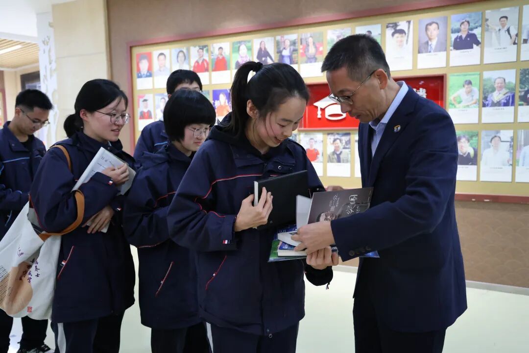 施一公院士则回赠天一中学一幅西湖大学云谷校区的瓷板画,画中静谧的校园与科研楼宇交相辉映,寄托着他对天一学子未来走进更高学术殿堂、投身科研事业的美好期许。