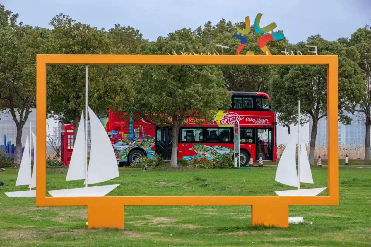 登上巴士的上层,视野瞬间开阔起来。湖岸边,粉白相间的樱花、红色撩人的海棠正值盛放,婀娜的柳枝在微风中轻舞飞扬。远处,几艘帆船静静停泊在码头,等待着“太湖揽胜”水上航线的开启,它们将载着游客深入湖心,触摸这片水域柔软的肌理。