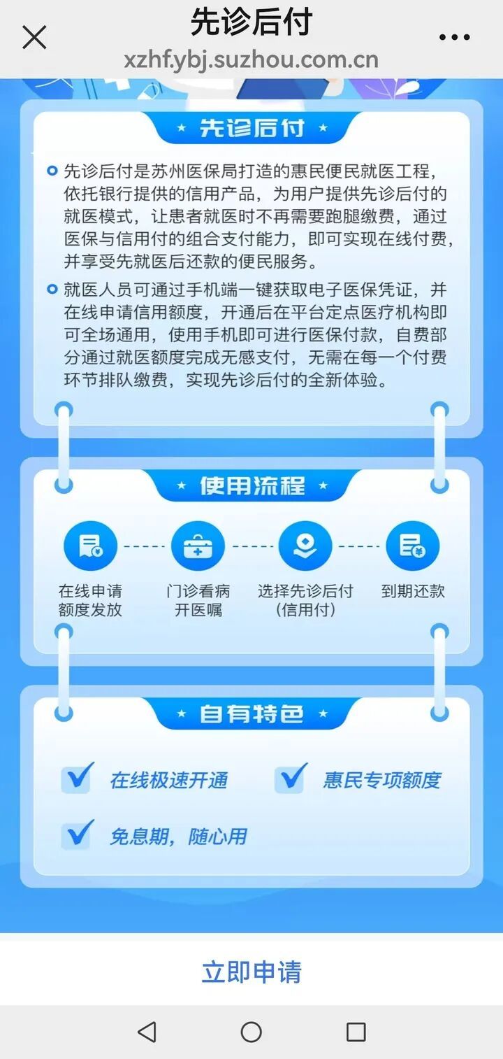 苏州“先诊后付”项目由市医保局牵头,联合大数据、卫健、金融监管等多部门共同打造,实现医保结算、医疗机构和银行信用体系的深度融合。患者可通过“苏州医保”微信小程序、支付宝小程序、“苏周到”App等多渠道,选择任意一家已上线医疗机构体验信用付。