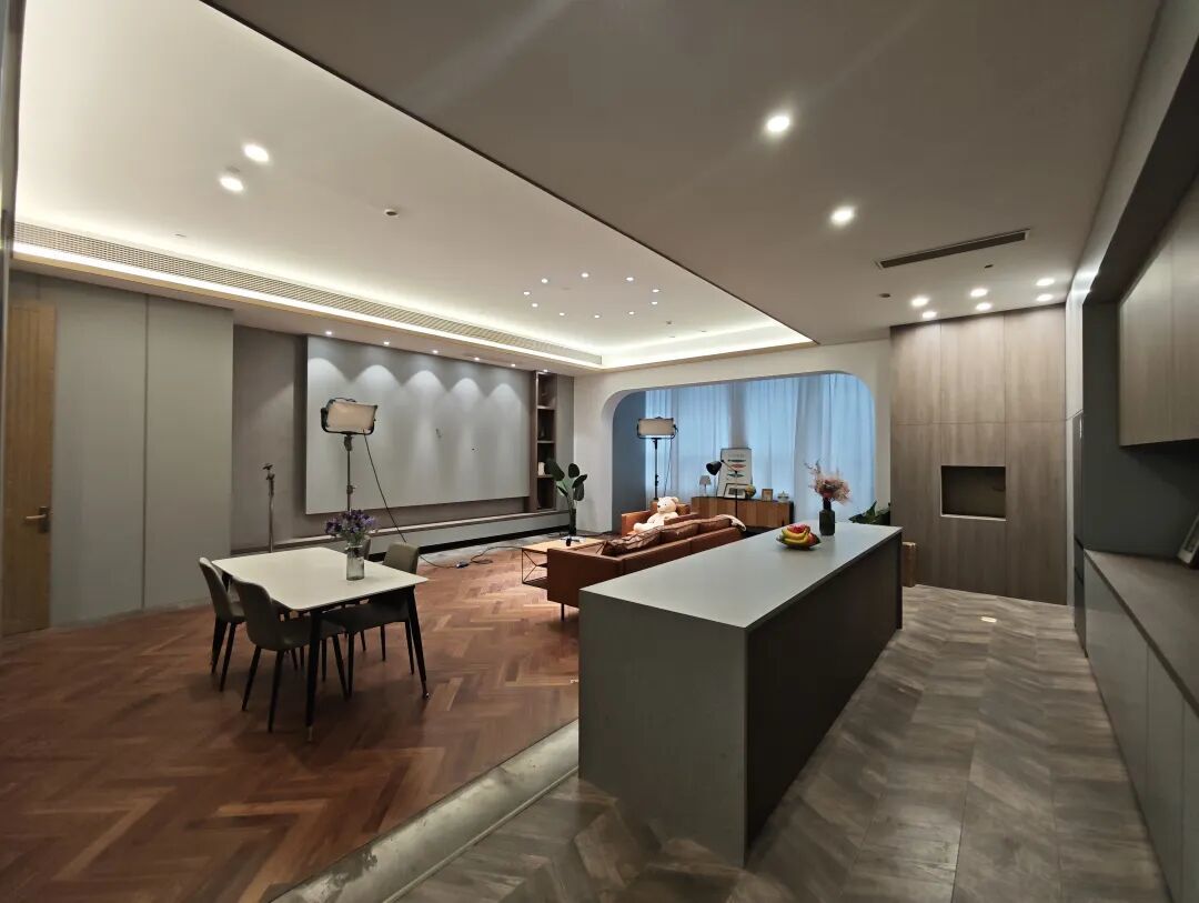 基地还原阳台、客厅、餐厅、厨房、浴室等一体化居家空间,拥有现代简约、北欧、小清新等多种风格,各类场景均预留产品区位。例如在餐厨区,基地预留了全嵌入式冰箱、抽屉式洗碗机、智能烟灶套装空间,产品可无缝安装,上线拍摄。
