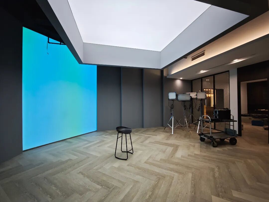基地还建设了新媒体空间结构拍摄场景,现场配备顶级阿莱SXT摄影机搭配变形宽银幕镜头,配合顶部巨型定制灯箱,可灵活调整光影。