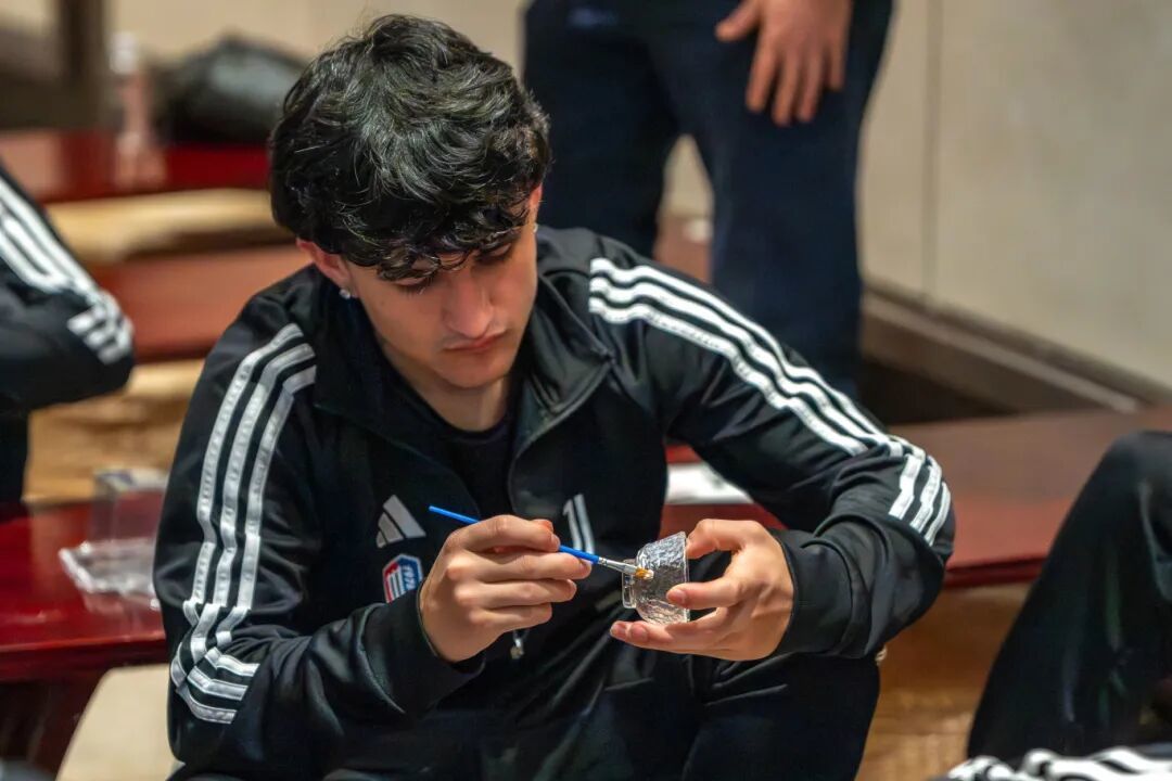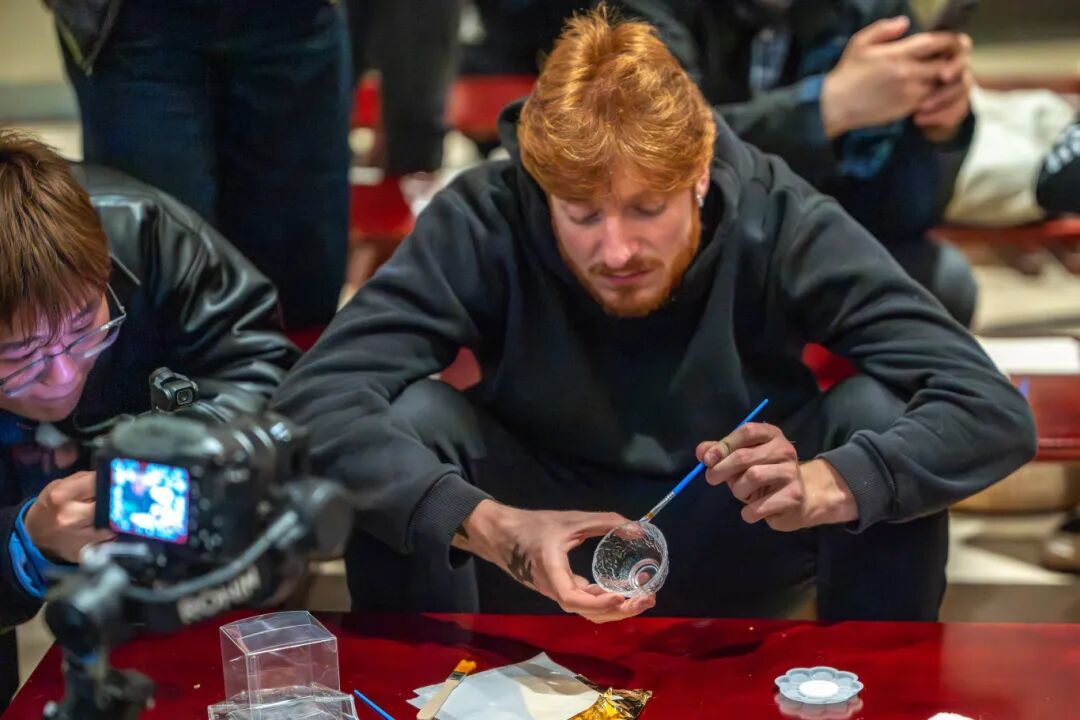 参观结束后,队员们开启国家级非物质文化遗产金箔制作技艺体验,在手工匠人的指导下参与金箔杯全程制作,亲手完成的金箔杯作为纪念赠予每位队员,让大家珍藏这份金陵文化记忆。