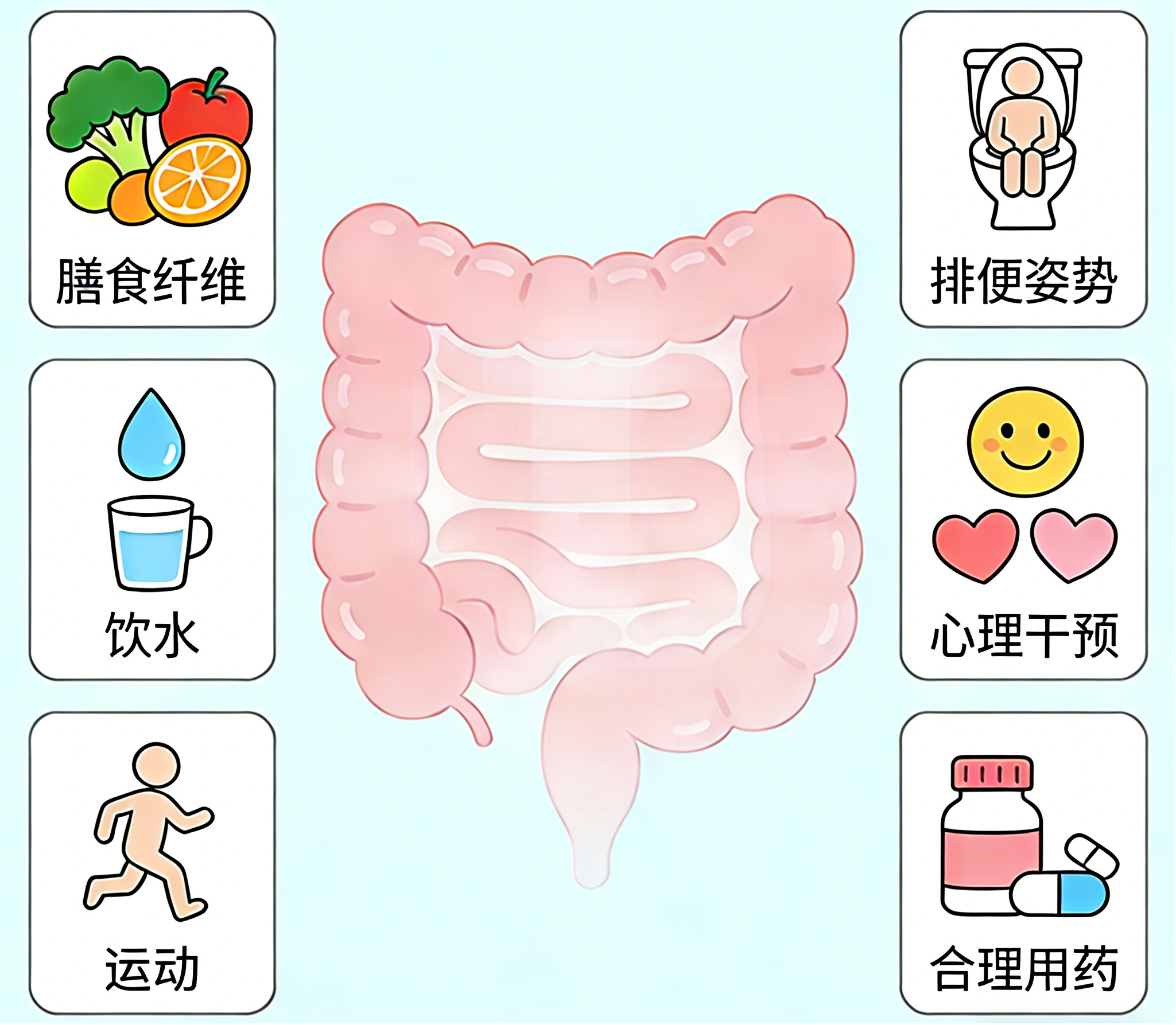 便秘的发生,通常是多种不良习惯和环境因素共同作用的结果。首先是饮食过于精细。粗粮、蔬果吃得少,喝水也少。其次是长期久坐,肠道也跟着“犯懒”,蠕动乏力。更糟的是,有了便意却“一忍再忍”,长期如此会让肠道“麻木”,排便反射越来越迟钝。再次是与情绪有关。肠道被誉为“第二大脑”,长期压力大、焦虑或心情低落,肠道功能也可能随之“失调”。除外,一些慢性病,如糖尿病、甲状腺问题或服用部分抗抑郁药、补钙补铁剂也会引起便秘。而老年人因身体机能自然衰退,更是便秘的高危人群。