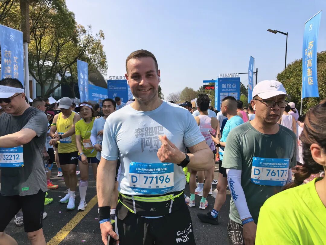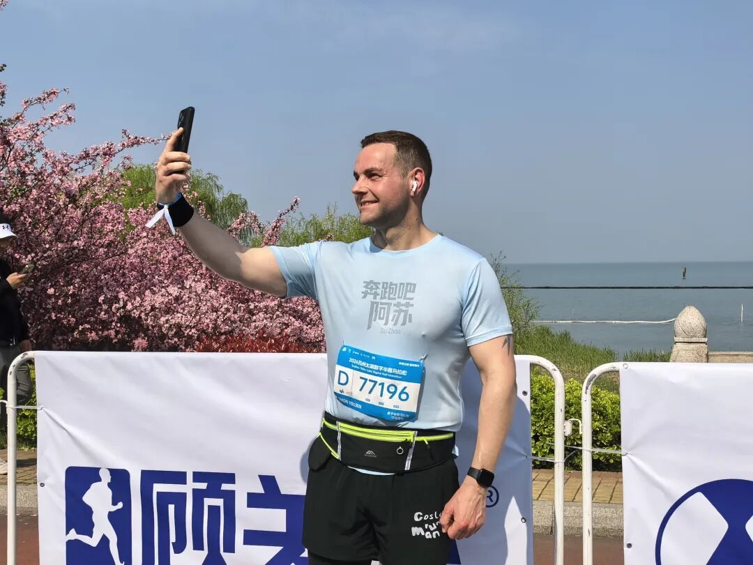 今天,这位爱上中国跑步氛围的丹麦人,如约站上了苏州太湖数字半程马拉松的起点。