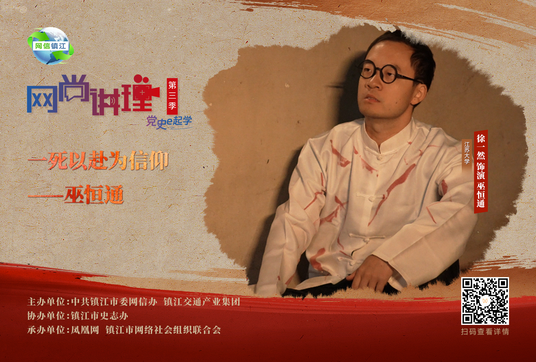 这是《网尚讲“理”》第三季《党史e起学》第四集《巫恒通:一死以赴为信仰》中,抗日英烈巫恒通与现代青年赵安宁之间一段穿越时空的对话。本集短片以句容籍抗日英烈巫恒通为叙事核心,采用“穿越”与“现实对话”的创新手法,将历史与当下并置。片中,青年学生赵安宁在巫恒通故居参观时,意外与“穿越”而来的巫恒通相遇,一段关于信仰、抉择与传承的故事徐徐展开。