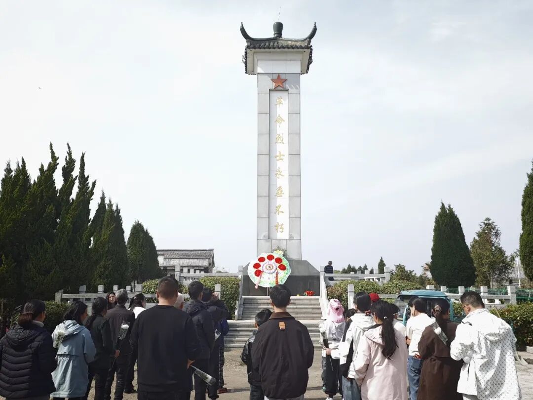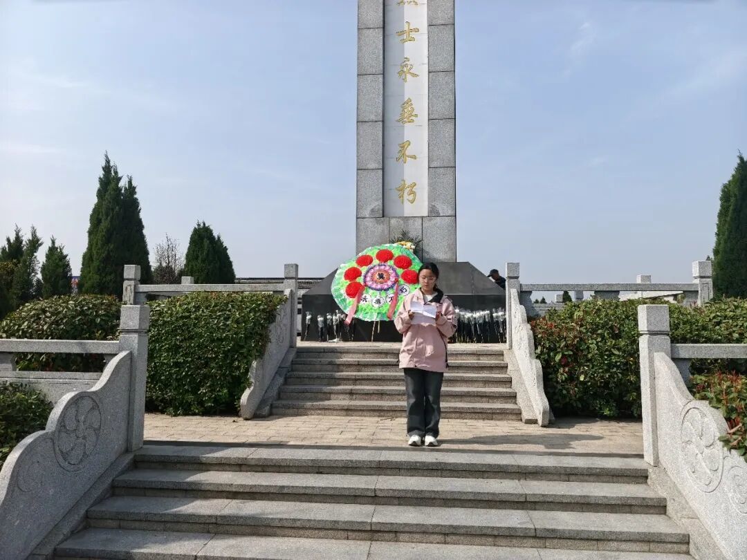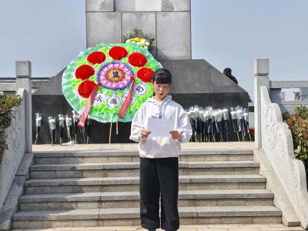 松柏苍翠,丰碑矗立,大冈烈士陵园内庄严肃穆。在烈士纪念碑前,同学们手捧黄菊白菊,有序上前,将手中的鲜花敬献于纪念碑前,朵朵素花承载着对先辈的无限追思。随后,全体人员肃立垂首,向为革命事业英勇献身的烈士们默哀。静默无声间,是跨越时空的缅怀,是融入血脉的致敬,更是对和平岁月的倍加珍惜。默哀礼毕,学生代表登台发言,用满腔的赤诚,用坚定的声音,许下传承红色血脉、勇担时代使命的青春誓言。