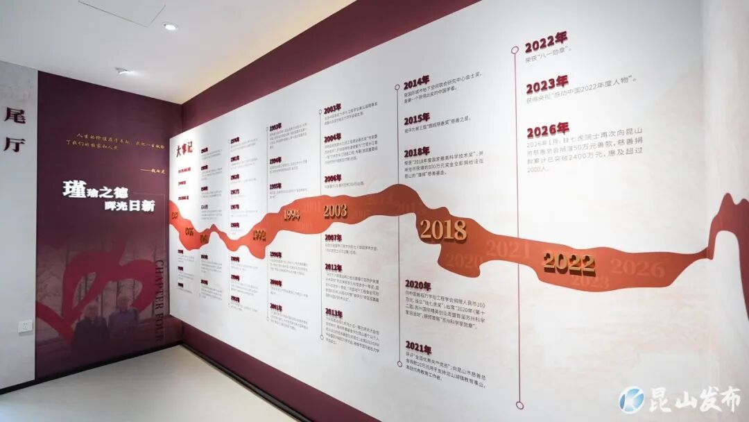 陈丽艳代表昆山市委、市政府和家乡人民,向钱七虎院士致以崇高的敬意和衷心的感谢。她说,钱七虎院士数十年深耕国防防护工程,为国铸盾、默默奉献,是当之无愧的国之脊梁,是昆山的骄傲与自豪。更为可贵的是,钱七虎院士始终情系桑梓,在昆山设立“瑾晖”慈善基金,投身助学、助残、助医等公益事业,用大爱传递温暖,是值得全市人民学习的楷模。我们将以足迹馆开馆为契机,弘扬好钱七虎院士的家国情怀与奉献精神,推动其先进事迹走进党校、校园、企业等各类阵地,激励全市干部群众立足岗位、实干担当、奋勇争先,为昆山“十五五”开好局、起好步凝聚力量,努力把昆山建设成为经济实力更强、人文底蕴更厚、文明程度更高的现代化城市,不辜负钱七虎院士对家乡的深情厚望。