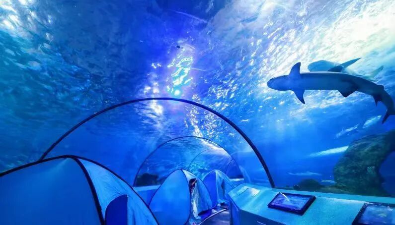 在长达74米的海底隧道“安营扎寨”,以海洋为穹顶,以鱼群为繁星,在鲨鱼、海龟等海洋生物的环绕下进入梦乡。活动包含专场科普课堂、生态瓶制作、探秘珊瑚后场、夜行动物观察等丰富环节,让参与者近距离感受海洋世界的神秘与梦幻。