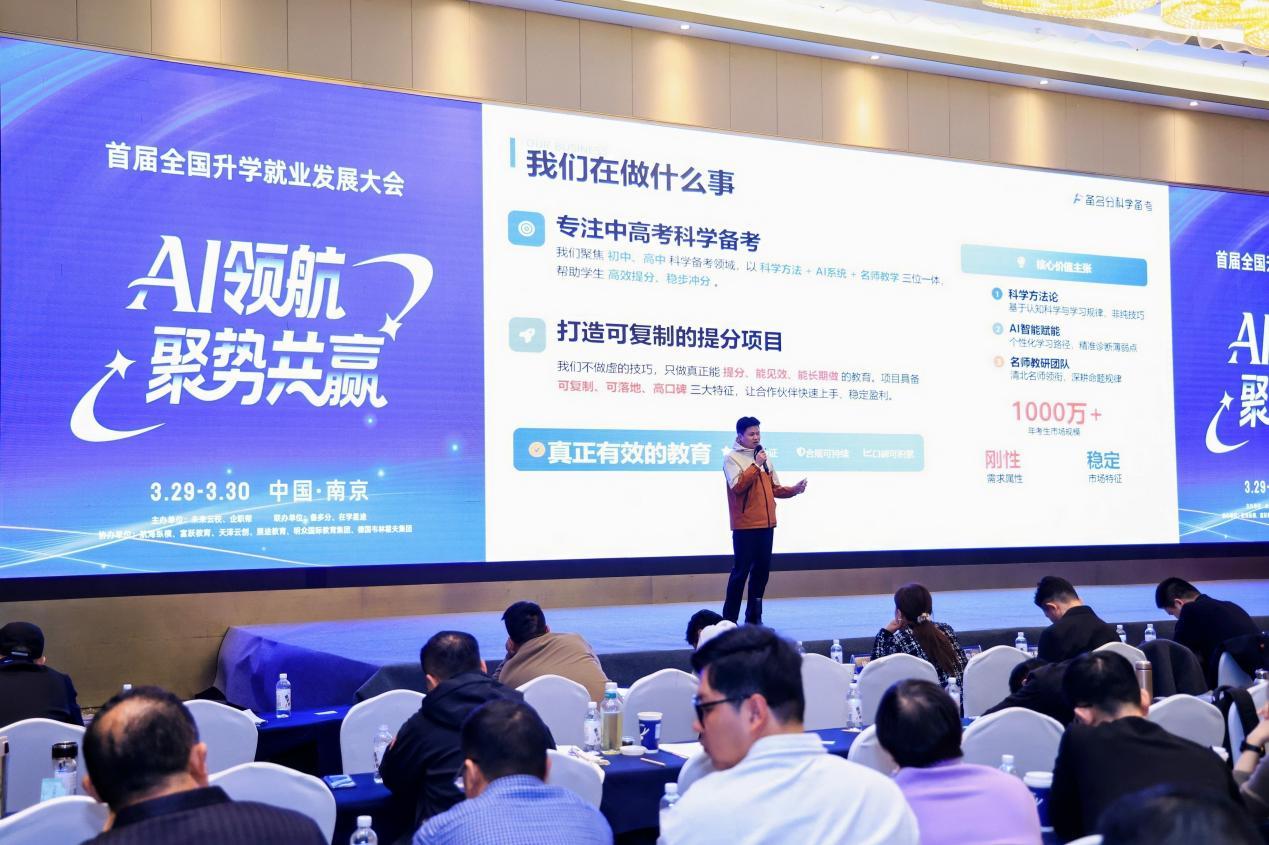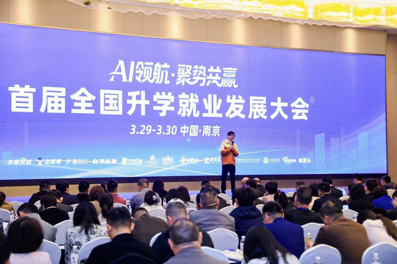 2026年3月29日至30日,以“AI领航·聚势共赢”为主题的首届全国升学就业发展大会在南京举办。本次大会由备多分AI、企职帮、未来云校、在学星途、联合主办, 以“聚资源、助升学、促就业、赢未来”为核心宗旨,汇聚了全国升学就业、AI教育、职业培训等领域的行业专家、机构代表与企业负责人,聚焦AI技术与教育行业的深度融合,拆解教培机构转型实战路径,搭建优质资源精准对接平台,为升学就业全链路高质量发展探寻新方向。
