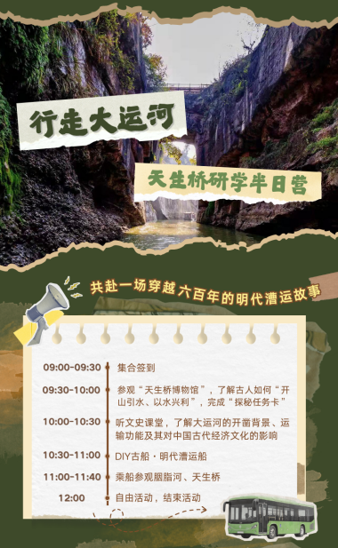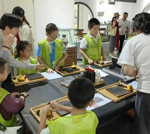 历史人文与非遗传承主题的研学路线,则让文史知识从书本走向实景。在天生桥景区,青少年可泛舟胭脂河,实地探访有着“江南小三峡”之称的天生桥奇观,在文史课堂中了解大运河漕运历史,通过古船模手作、运河非遗宣纸制作等体验,触摸千年工匠智慧;溧水区博物馆推出的非遗拓片体验,让零基础的青少年也能亲手制作并装裱金石拓片,在沉浸式体验中感受传统文化的魅力,实现了“行走的文史课堂”的教育价值。
