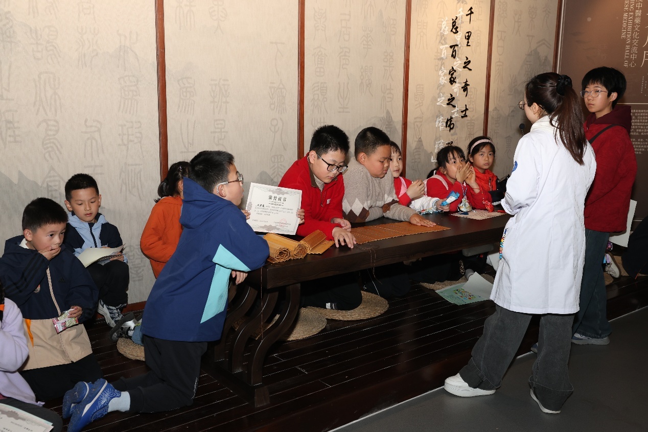研学最后一站,孩子们走进金陵中医药文化交流中心,深入金陵医派传承探索脉络。在讲解员的引导下,大家通过图文展板、珍贵实物、互动投影等多种形式,全面了解金陵医派的历史渊源、代表名医、经典方剂与学术特色,近距离感受本土中医药文化的深厚底蕴。