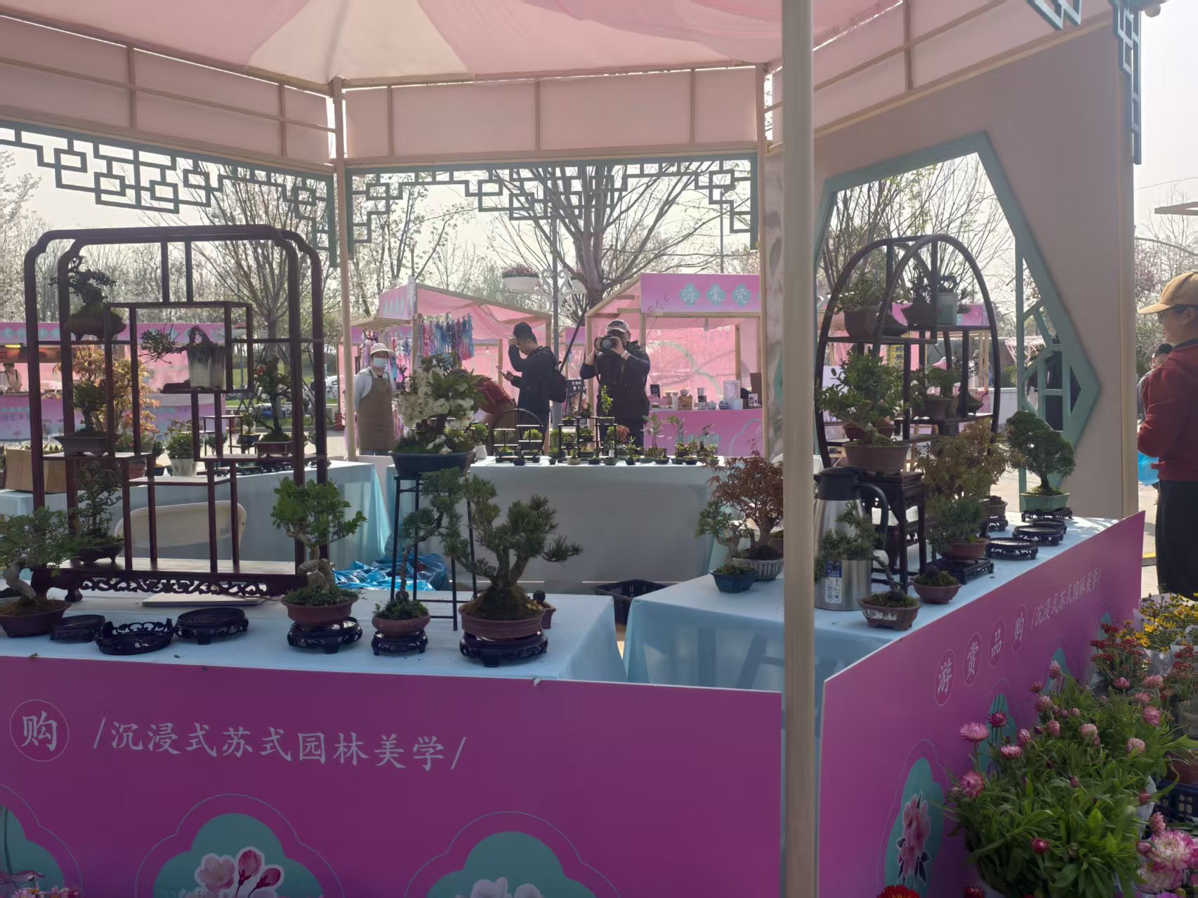 本届海棠市集以“海棠四弄”为主线,创新性地将园林“移步换景”的美学理念融入市集动线,实现“景中有市,市中有景”的无缝衔接—一弄海棠花影、二弄海棠雅集、三弄海棠滋味、四弄海棠雅物,四大板块层层递进,让游客在赏海棠、逛市集的过程中,沉浸式感受苏式风雅。