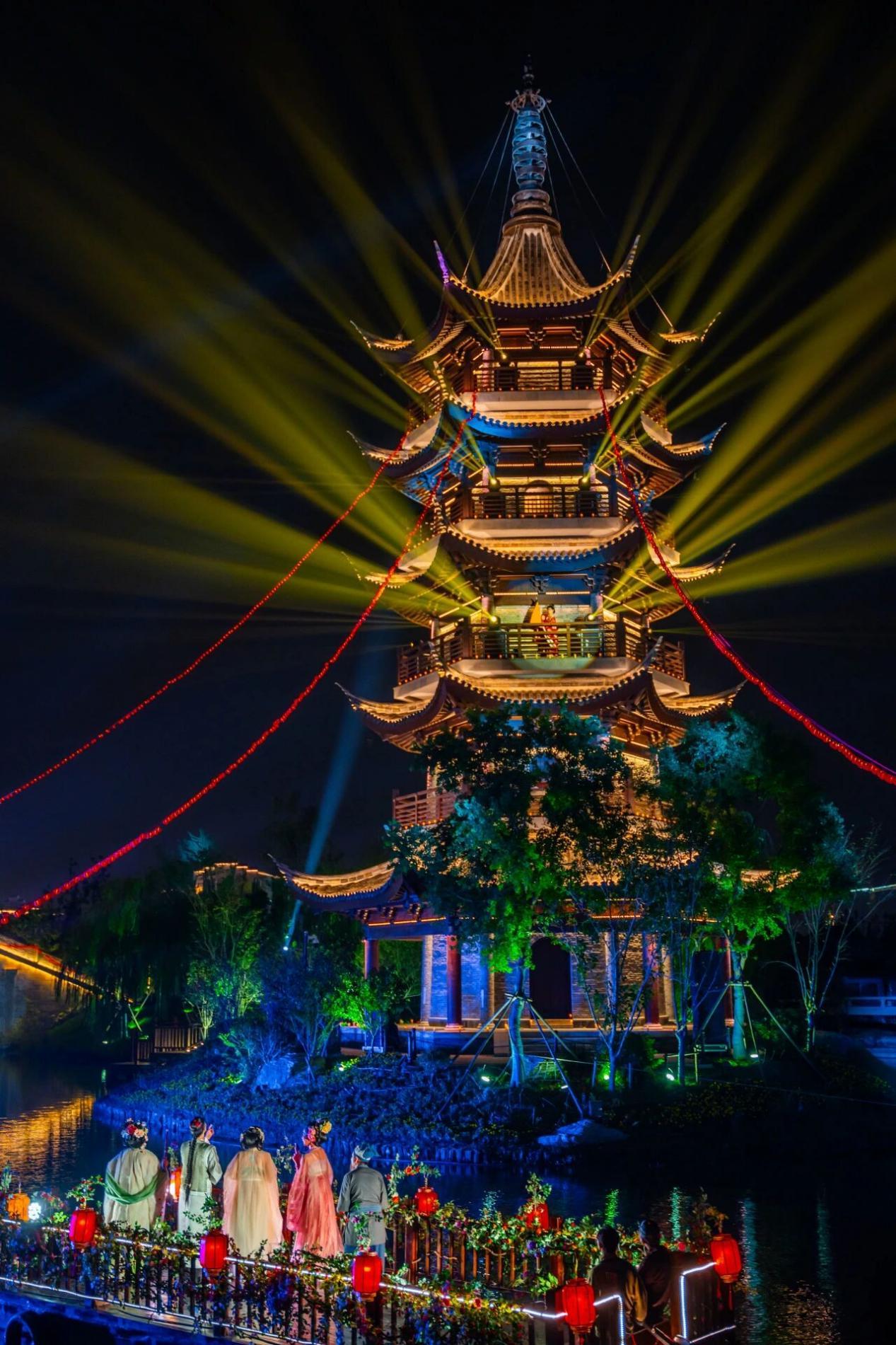 古镇充分挖掘《镜花缘》与珠溪古镇的历史人文渊源,通过文创开发、场景打造、情境互动等方式,把《镜花缘》打造成古镇文旅体验IP,持续落地元宵镜花缘主题灯会、主题汉服大秀巡游、青鸾火凤飞天秀、镜花缘古风水上巡游等系列主题演艺,逐步形成了镜花缘沉浸式文化体系。