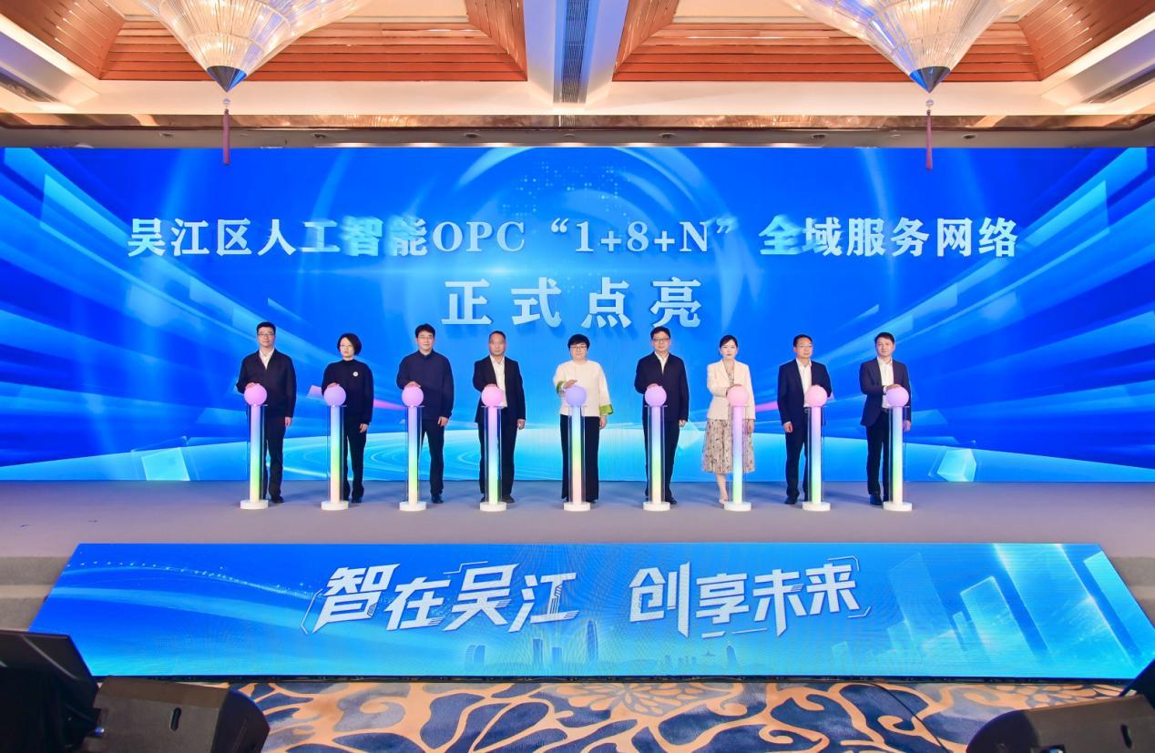 吴江的服务体系被概括为“1+8+N”:1个一站式服务专窗,8大板块服务网络,N个OPC社区专属服务专员。在启动仪式上,吴江区9位板块代表与区领导共同点亮全域服务网络,标志着这套体系正式投入运行。
