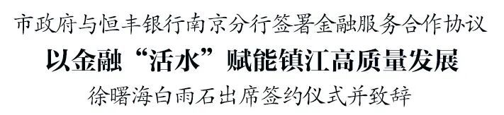 徐曙海表示,恒丰银行作为全国性商业银行,与镇江合作已久,为镇江高质量发展提供金融支持,为诸多企业提供了丰富的金融服务,受到了企业的欢迎。徐曙海说,近年来镇江高度重视金融体系建设,逐步构建起“三帆两金一甘露”金融服务体系,金融机构日益青睐镇江,金融市场对镇江发展信心持续增强,助力镇江经济社会发展呈现蓬勃态势;当前,镇江正处于追赶超越、朝气蓬勃之时,希望恒丰银行发挥自身优势,加大对镇江的信贷投放力度,聚焦先进制造、科技创新、绿色低碳等重点领域,提供更加多元化、个性化的金融服务,积极参与地方重大项目建设,持续深耕普惠金融,让更多经营主体享受到金融服务的雨露甘霖。市政府将持续优化营商环境,为恒丰银行在镇开展业务提供优质服务和有力保障。