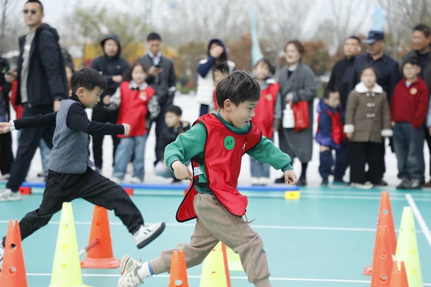 体育竞技区热火朝天。青少年篮球赛、羽毛球赛、乒乓球赛、门球友谊赛、少儿足球邀请赛等多项赛事同步开赛,参赛者们奋勇拼搏,展现昂扬向上的体育精神。趣味田径挑战赛、无人机足球挑战赛等定时PK赛,更是为青少年搭建了展示自我的舞台,现场欢呼声、加油声此起彼伏。