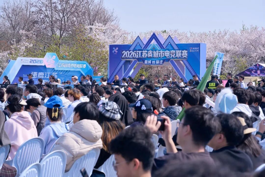 现场还邀请了多位电竞明星主持人、解说及Coser出席,吸引了数百名电竞爱好者前来观赛。在春日樱花盛景中,观众一边赏花,一边观看高水平电竞赛事,为城市队伍加油助威,为清明假期的盐城注入了蓬勃活力。