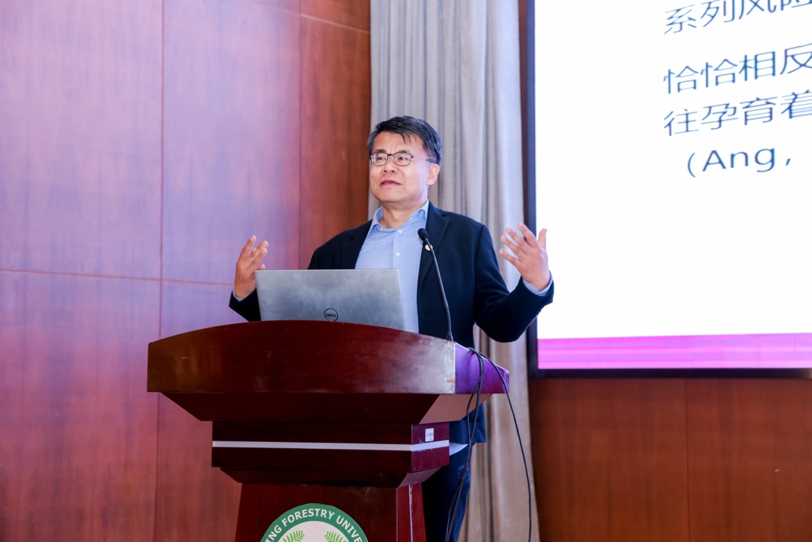 勇强在致辞中首先代表学校对中国林学会的信任与支持表示衷心感谢,并对全体与会嘉宾表示热烈欢迎。他指出,申请设立中国林学会生态文明传播分会,是学校积极服务国家生态文明建设、自觉践行农林高校使命担当的重要举措。学校依托长期积累的学科优势与研究基础,经过充分论证和积极筹备,成功推动分会落户,致力于打造一个集思广益、协同创新的高能级平台。勇强表示,学校将持续为分会建设提供有力支持,推动其在智库研究、学术交流、人才培养与科学普及等方面系统开展各项工作,努力将其建设成为生态文明传播领域的高水平阵地。他强调,生态文明传播是一项需要多方协同的系统工程,必须凝聚学界、业界与社会各界的力量。他希望以分会为纽带,进一步加强跨界融合,深化理论探索与传播实践,共同为推动绿色发展、建设人与自然和谐共生的现代化作出更大贡献。