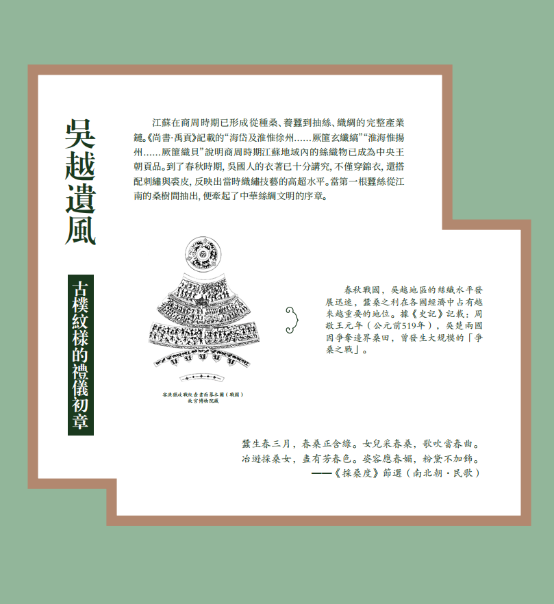 “桑源启蛰”—“吴越遗风”—“丝路虹贯”,从先秦的滥觞走向汉代的鼎盛。