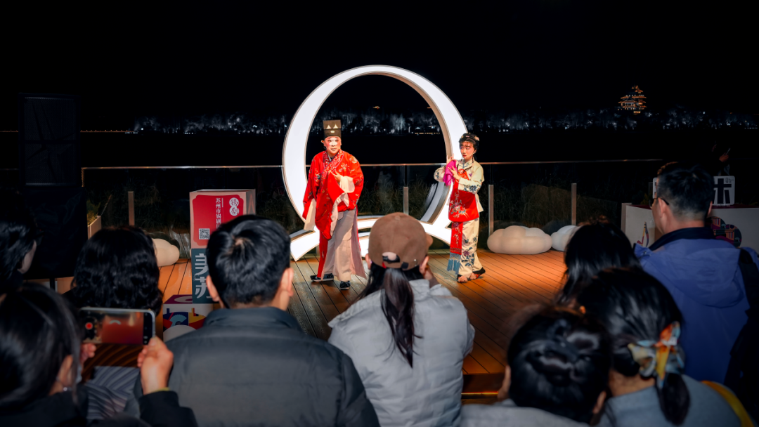 活动期间,每周安排特色艺术演出,古朵顽趣等优质剧目轮番上演,将戏剧与非遗文化融入日常展演,通过街头流动展演、沉浸式互动体验、轻戏剧现场演绎等多元形式,为游客带来“动静相宜、古今相融”的文化体验,让摩天轮成为传播江南文化的空中“文化会客厅”。