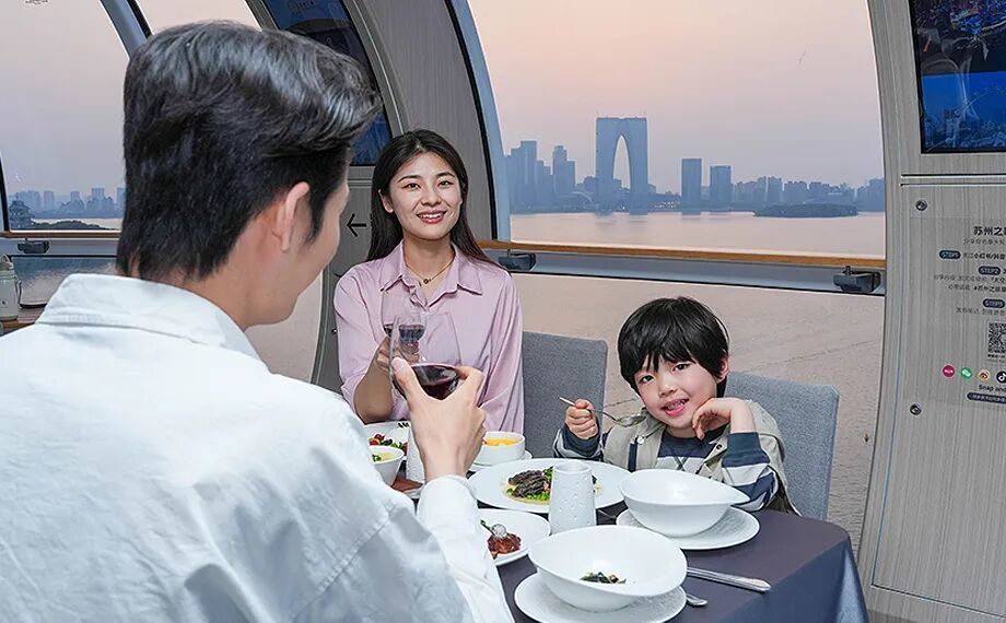 带上家人,来一场“苏州之眼+酒店”的周末微度假;约上三五好友,体验“摩天轮+水上游览”半日浪漫游;又或是一个人,在云端舱里安静地看一场日落……每一次登舱,都是一次浪漫微旅行。