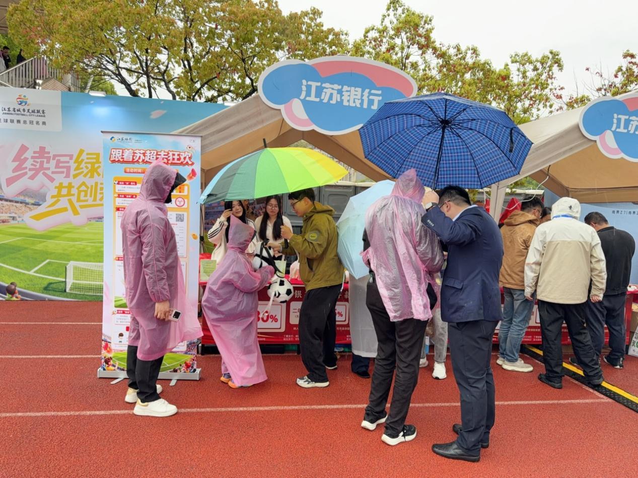 一场比赛下来,江苏银行的展台成为临时服务点。终场哨响,人群散去,江苏银行工作人员弯腰把最后一批寄存物品归拢整齐,有球迷急匆匆跑来接过背包连声道谢,信任从来不是喊出来的,是帮一次忙、递一杯水、撑一把伞,一点一点攒出来的。