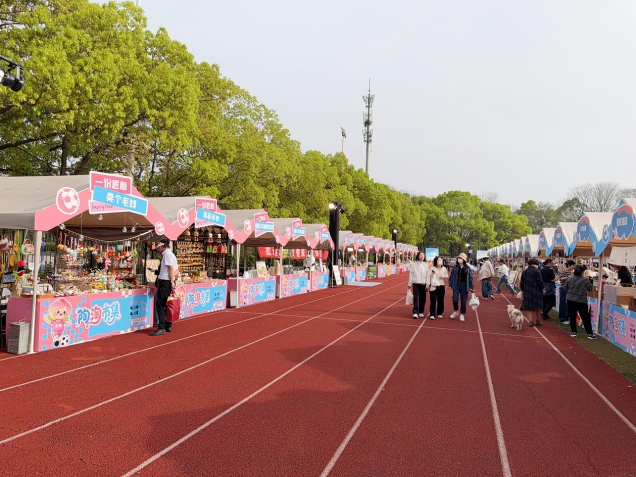 4月11日傍晚,无锡赛区的绿茵场上激战正酣,而在内场入口外,江苏银行的展台前,一场微雨中的物品接力悄然进行。展台一角是球迷寄存在这的婴儿车、充电宝、背包……